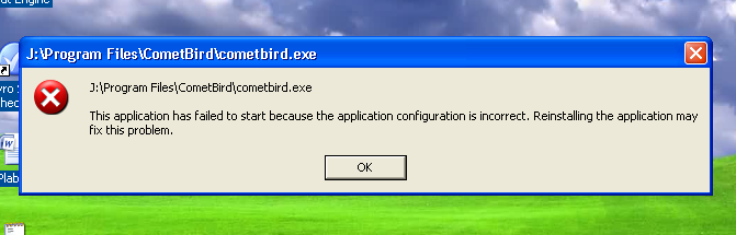 I was using cometbird 3.6.16. Then I downloaded version 11.0 for windows, uninstalled 3.6.16, and installed 11.0, but when I tried to start the browser the following dialogue box showed up: