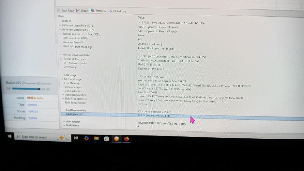 I’m currently very active, uploading at around 22.5 MB/s and I have already contributed over 10.5 TB in total uploads. I am steadily climbing the global ranking (currently at #94,926), but reaching over 2 million points seems like an incredible milestone.